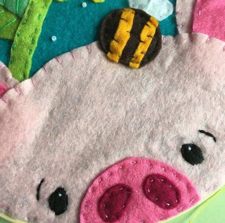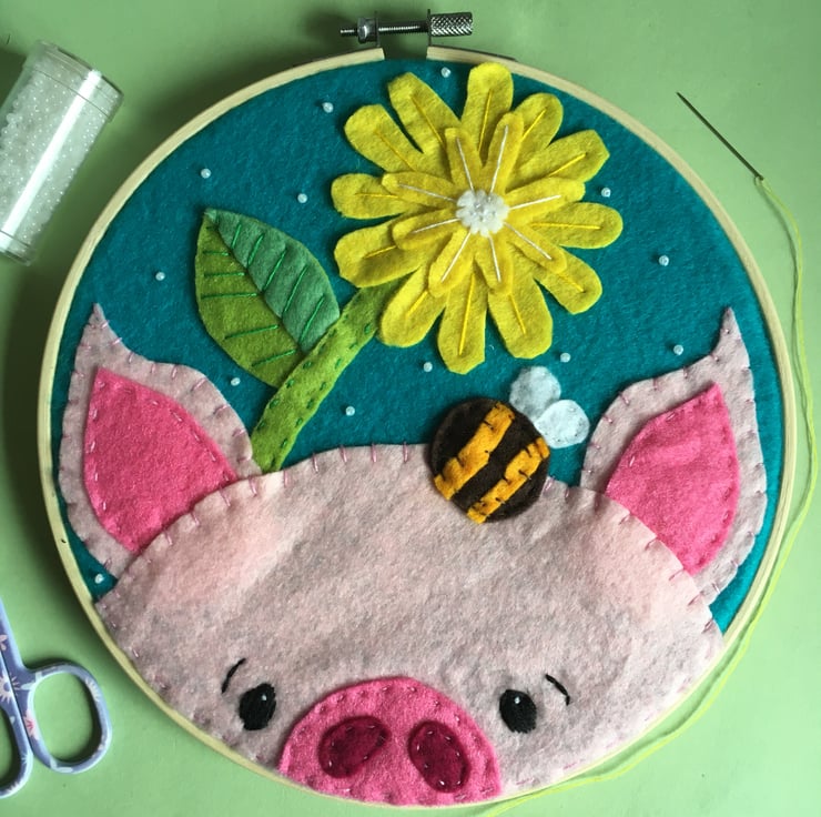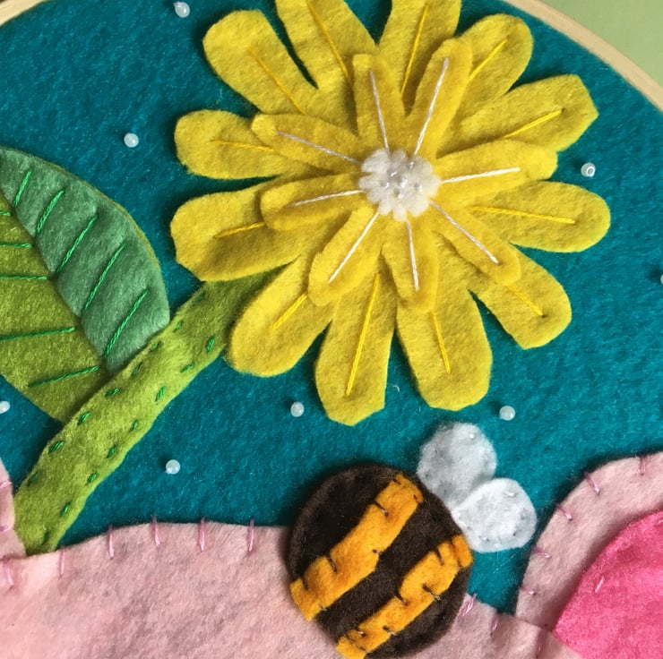 The picture is made from layers of felt and has been decorated by hand with embroidery and bead work. it has been backed with a layer of felt to finish it off.