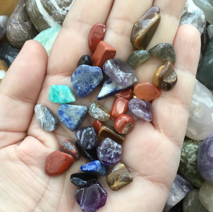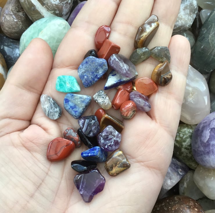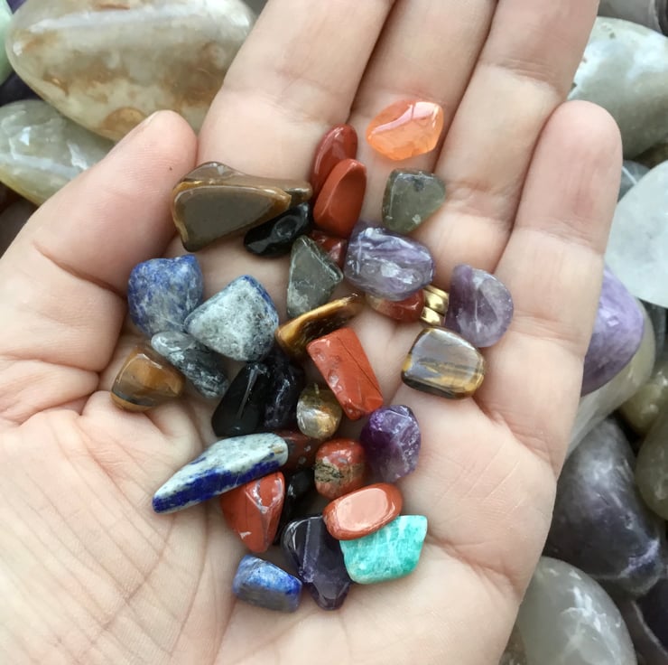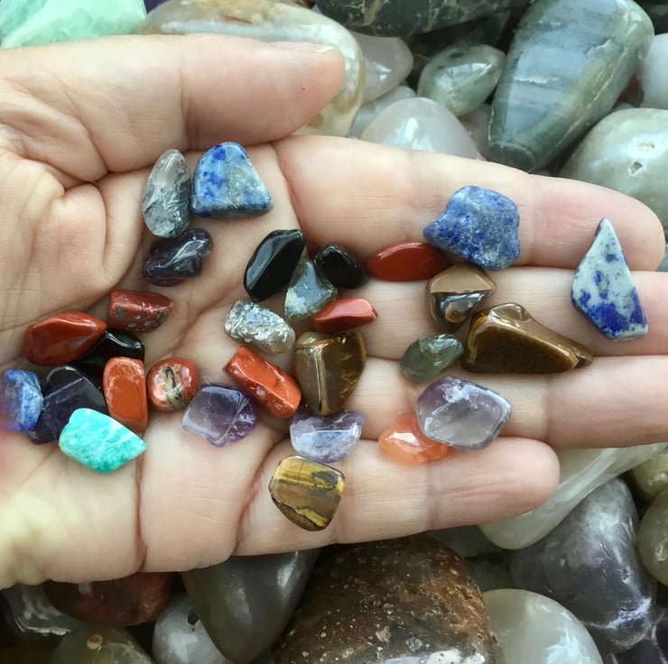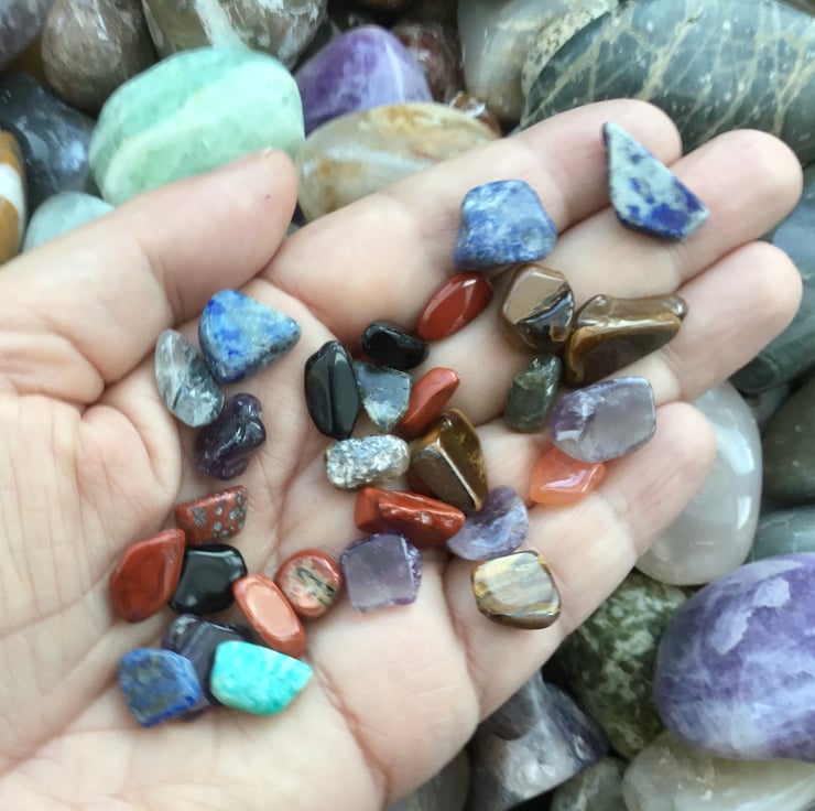 As mentioned previously, not all the stones included are officially gemstones, but pretty none the less, this selection does include, tigers eye, amethyst, red Jasper, agate, sodalite, and more.