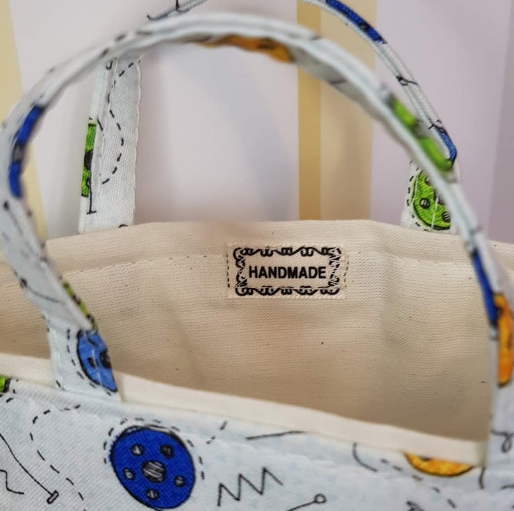 All the items are hand sewn by me. I am increasingly thinking about sustainability with my work and am including more repurposed projects, and trying to use organic and natural fibres and fabrics.