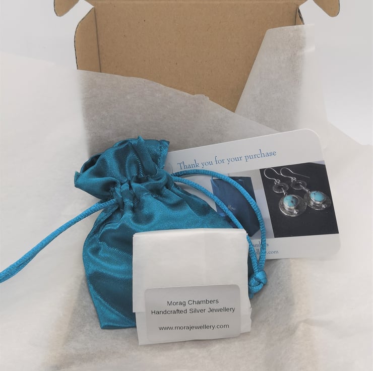 These earrings are presented wrapped in tissue in a lovely satin gift bag then posted, via Royal Mail Signed For service, in a protective cardboard box.