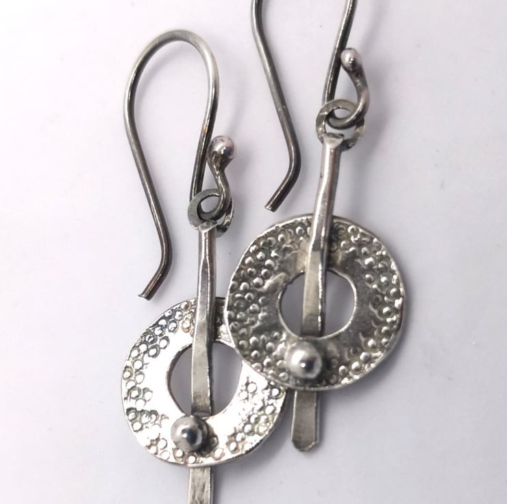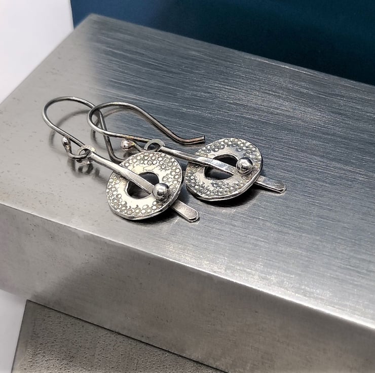 I've textured and treated the silver to darken it for a rustic finish and to make the design stand out - then hung the earrings on handmade silver earwires.