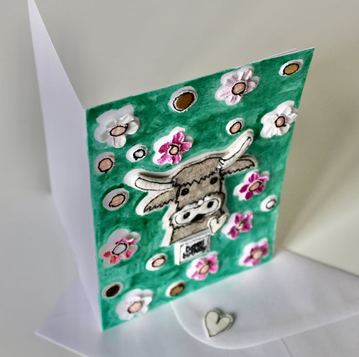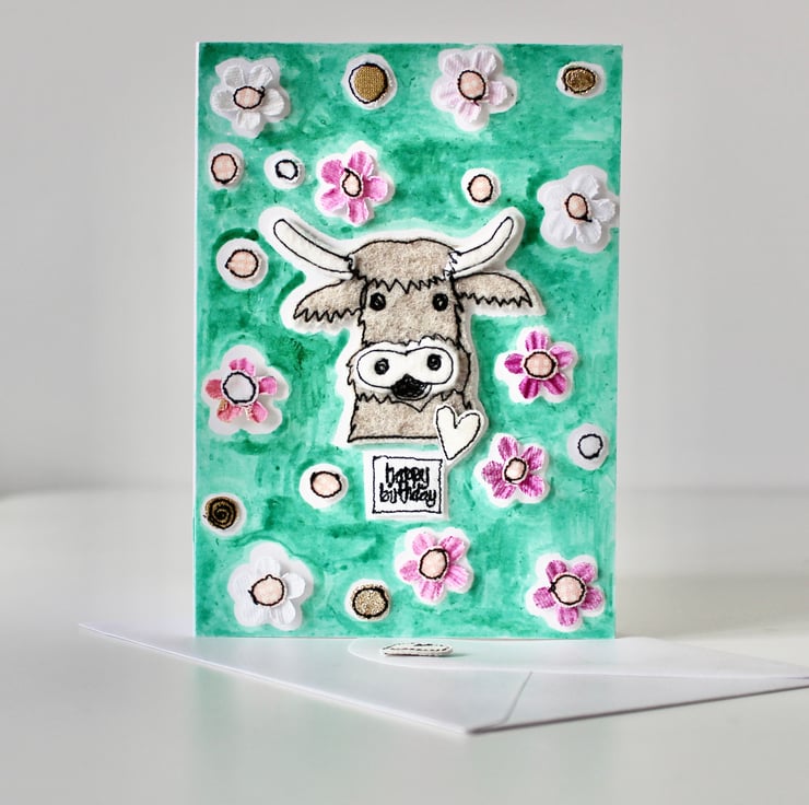 This card is not a print, each fabric piece has been sewn by me and my sewing machine, making it totally unique.