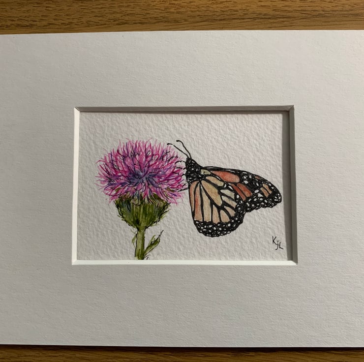 Original artwork of a beautiful butterfly nestled on a thistle.