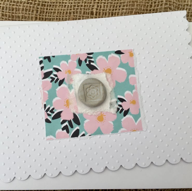 A beautiful one off Blank card made with hand made papers and and a hand made Ceramic design gift. This can be framed and made into a keepsake. This card is left blank for you to write your chosen message onto it. It can be sent as a birthday card, valentines day card, anniversary card, wedding card, etc.