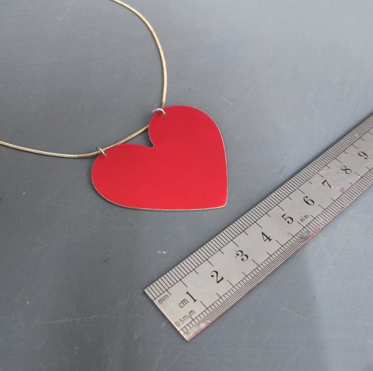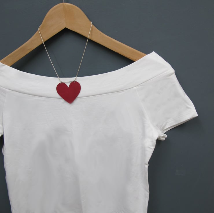 Bright red anodised aluminium necklace with a large red heart. Simple and bold at the same time, a perfect statement necklace.