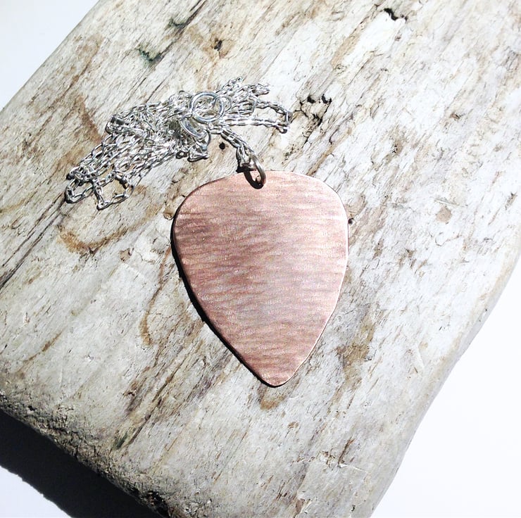 Hammer Textured Copper Plectrum Pendant Necklace - UK Free Post