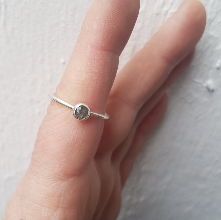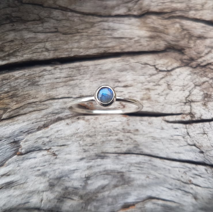 This pretty ring has a beautiful 5mm round Labradorite gemstone.