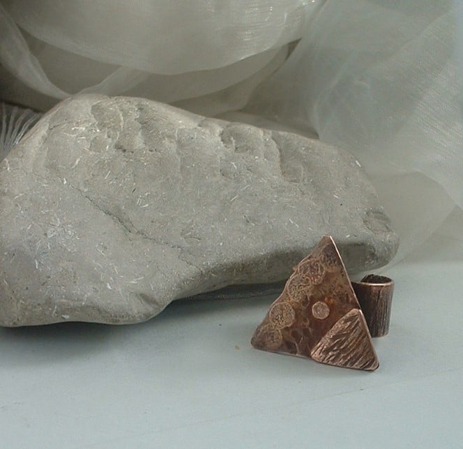 A stunning rustic copper ring of a triangle within a triangle... a simple design representing strength to remind us of how strong we are when the going is tough