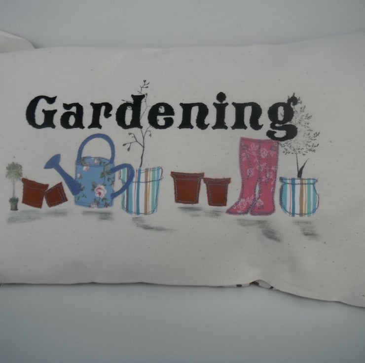 Appliqued, embroidered, and hand painted cushion complete with cushion pad.