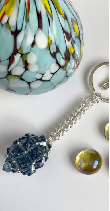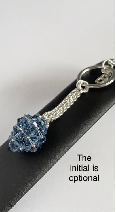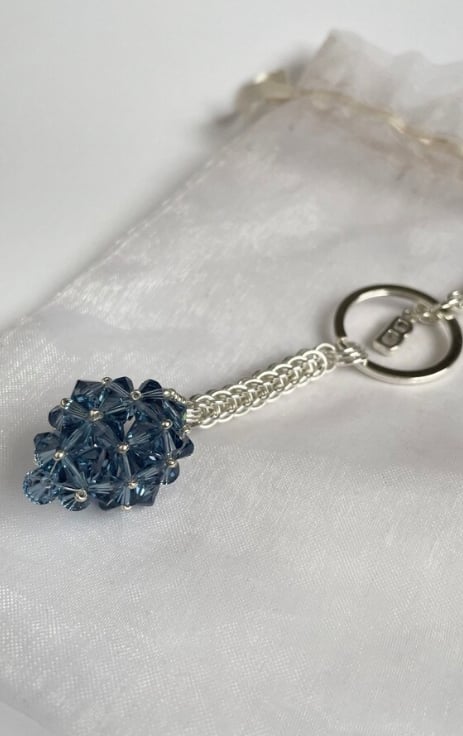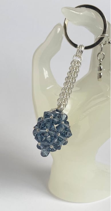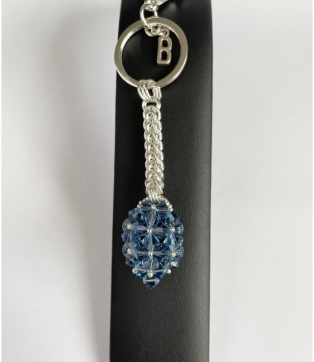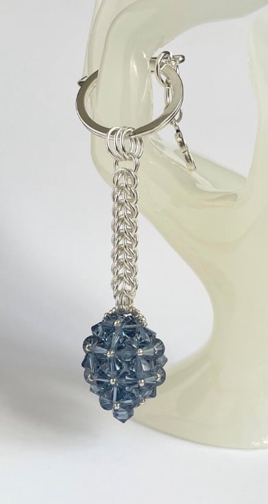 Handbag Charm, Egg Shaped Denim Blue Crystal with a Chainmaille Chain, Keyring