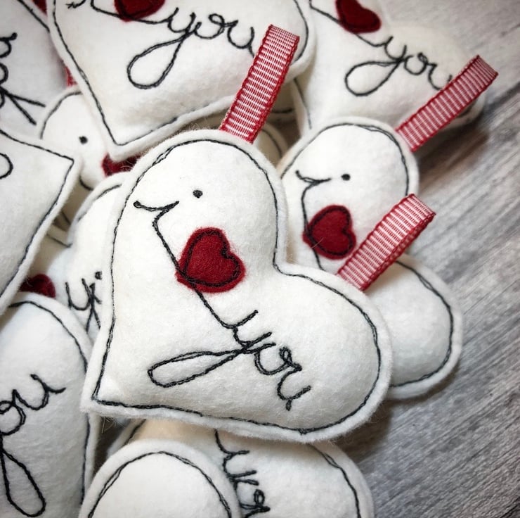 The wording is machine sewn by myself not a computer, therefore, each one is slightly different which adds to their individuality.