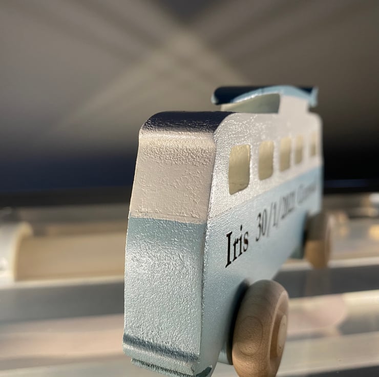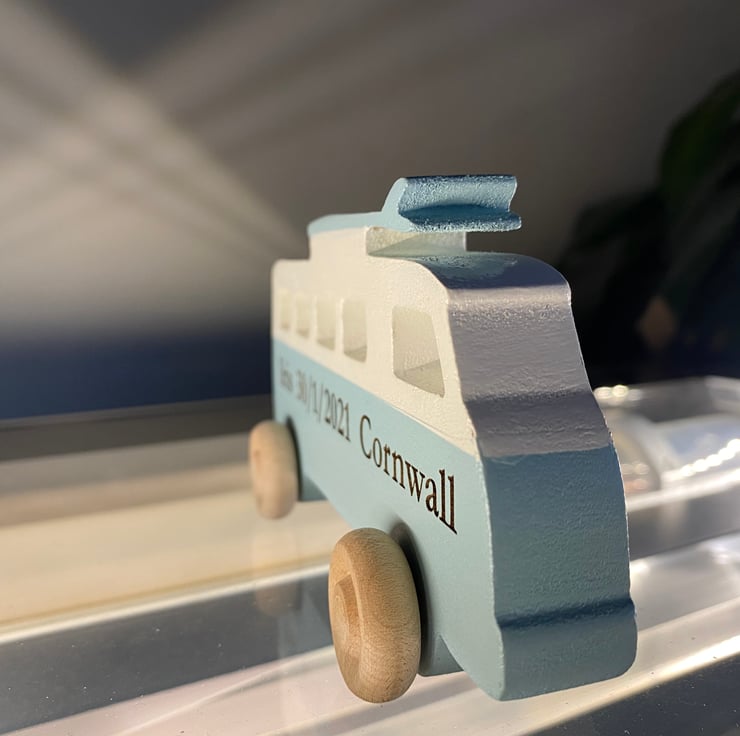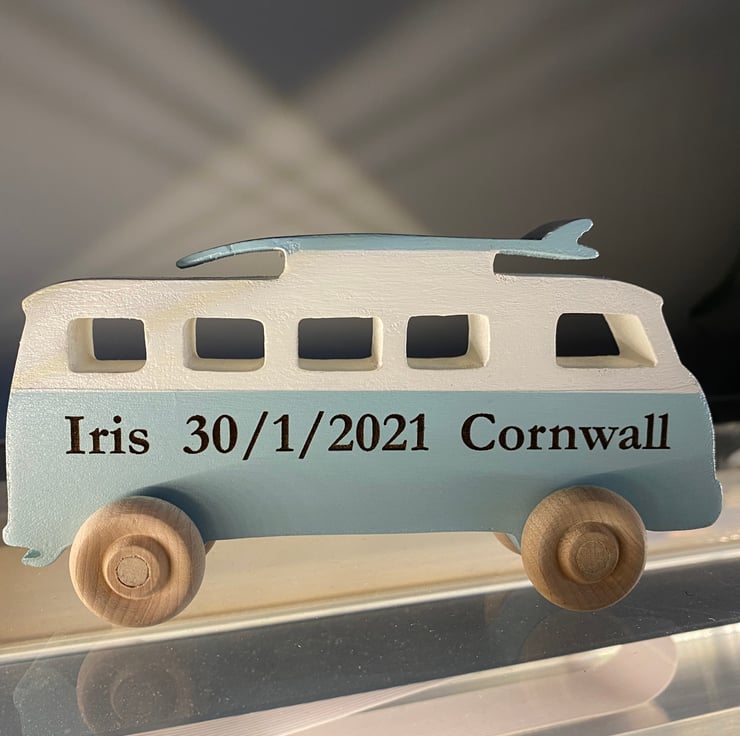 This camper can be personalised with your names, birth date and name or what you can think you’d like to say.