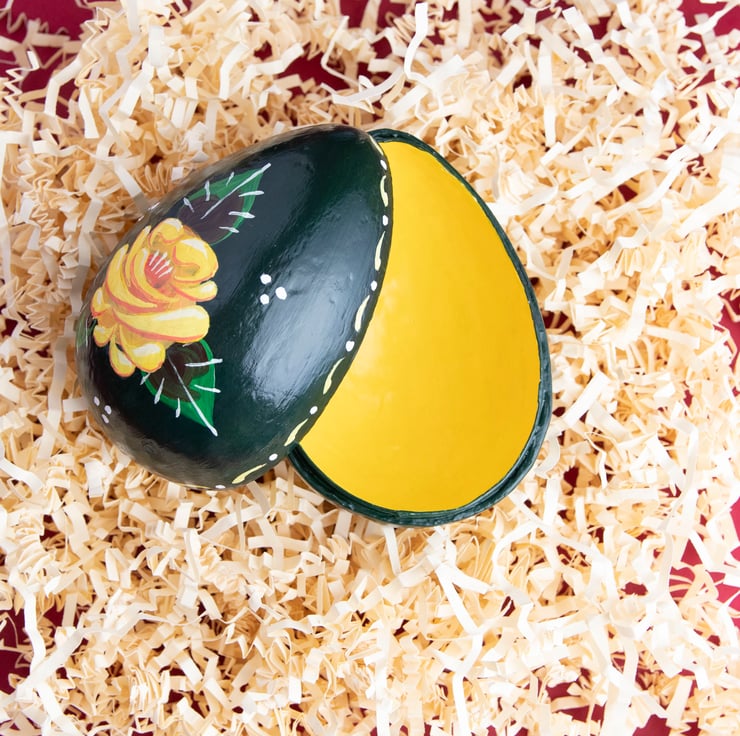 This egg shaped box is perfect for keeping your chocolate stash hidden, and when it's all gone it's great for keeping sewing supplies, jewelry or any other knicknacks you need to store.