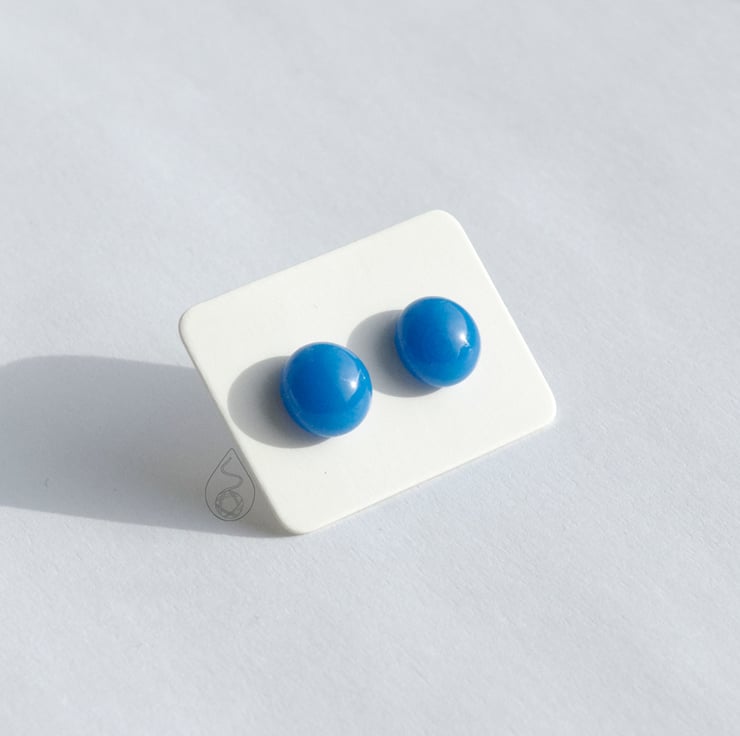 Due to the nature of working with glass, there are slight variations in each individual earring. Each pair are matched in size. The average size is about 8mm across but the smallest are about 5mm and the largest are about 1cm across. If you have a preference for a smaller or larger pair let me know and I will see what I can do.