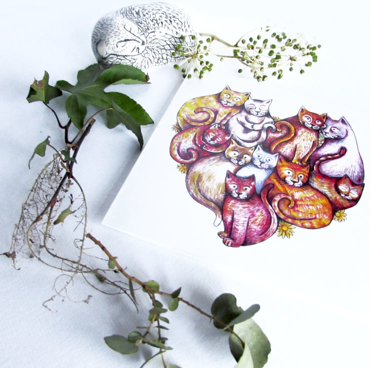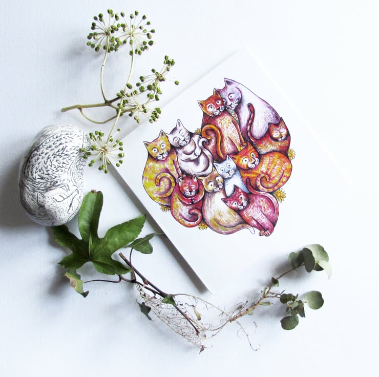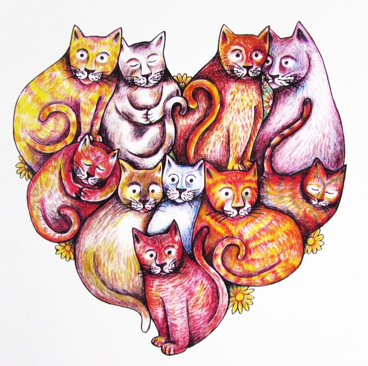 The LOVE cats are part of a series of heart shaped designs which often started out as doddles! I was inspired by my sisters love of cats...its all about the feline.
