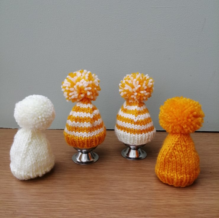 A set of 4 egg cosies in lovely spring colours to brighten up breakfast.