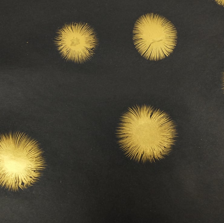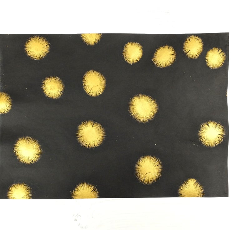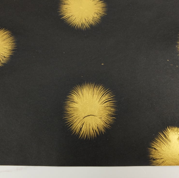 Marbled onto 80gsm FSC black base paper. The sheet is approx a4 in size, 297mm x 209mm, long grain.