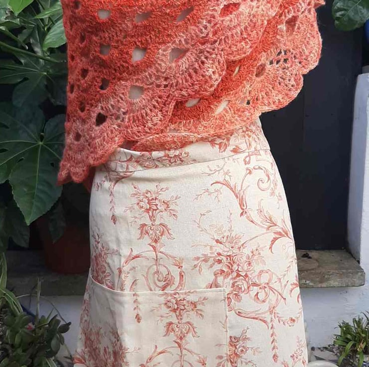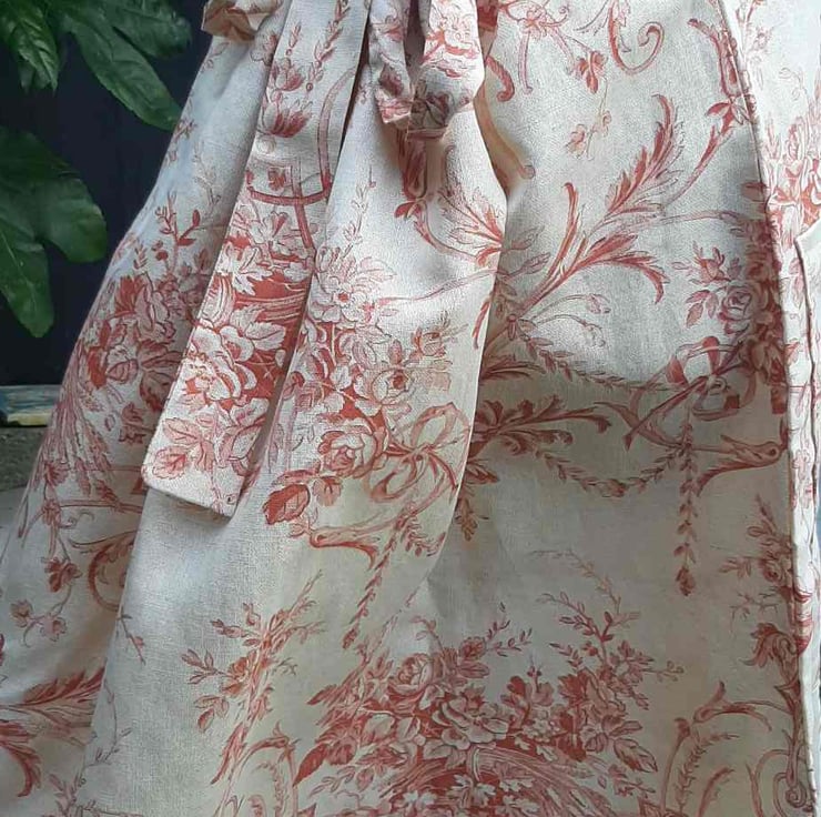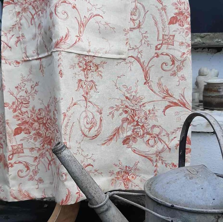 This pretty peacy cream fabric is perfect for a allotment skirt .length 33" as adjustable it will fit size 14 to 18 .it pulls together to a gather at the back .looks fab with boots and a petticoat. All seams have been overlocked and it comes in a matching bag .