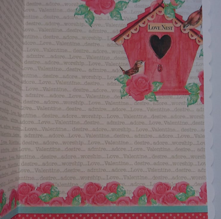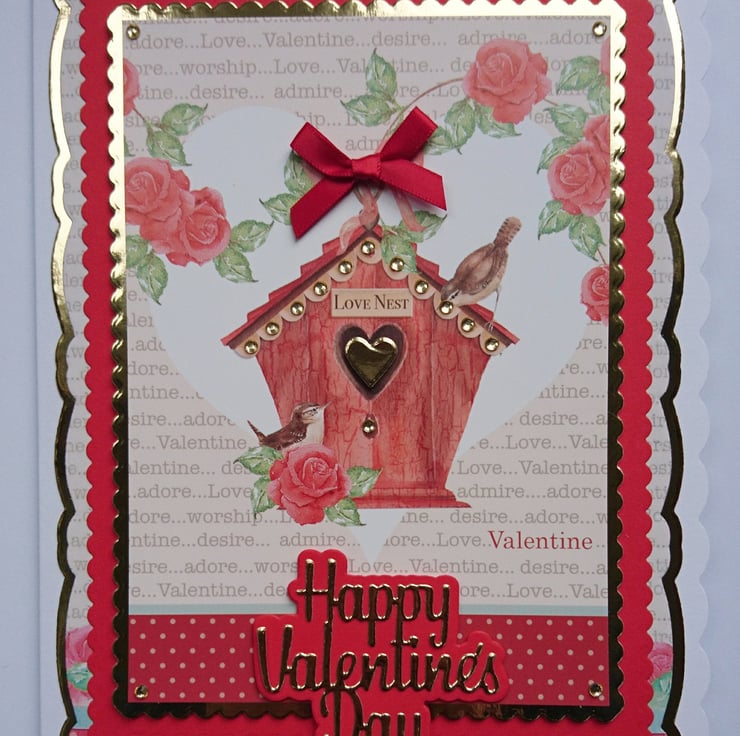 This is a lovely luxury 3D handmade greeting card to say Happy Valentine's Day to your love bird.