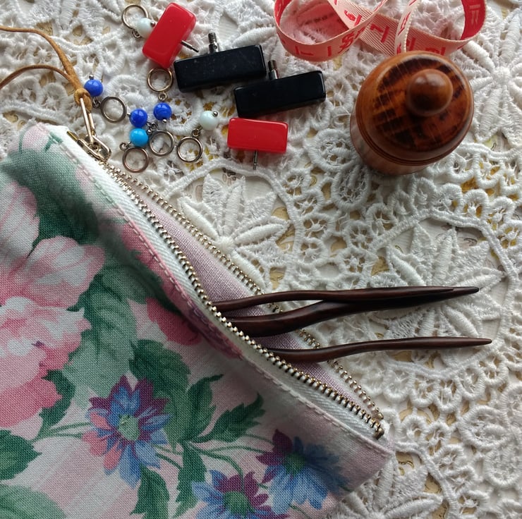 Made from time softened and re-purposed vintage furnishing fabric, this notions pouch is the perfect addition to any crochet or knitting bag and will store an assortment of accessories as well as adding a little vintage aesthetic.
