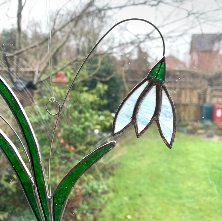 The snowdrops are the first flowers in the garden to flower, so the first to finish but here are some made out of stained glass so you can see them in the window all year round.