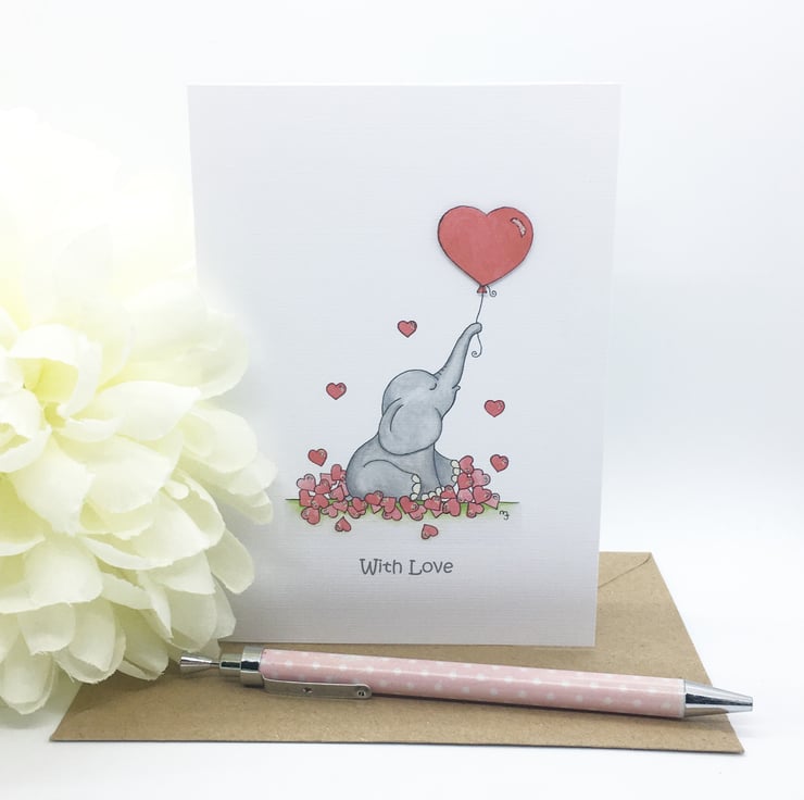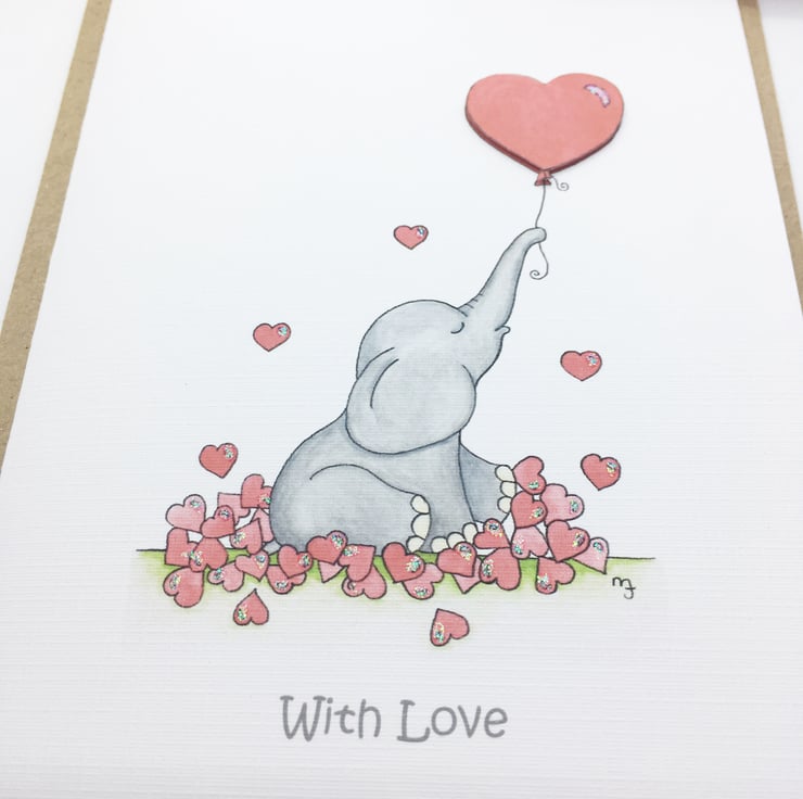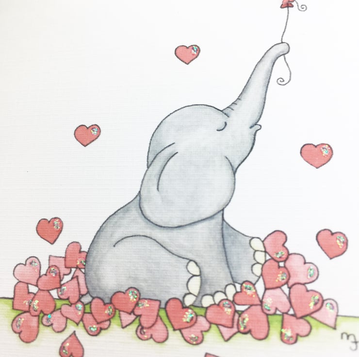 This cute Ellie card has been designed using my own original watercolour illustration. The card has been printed out onto good quality linen embossed card and decoupaged up in parts. The card has been finished off with a little glitter detail.