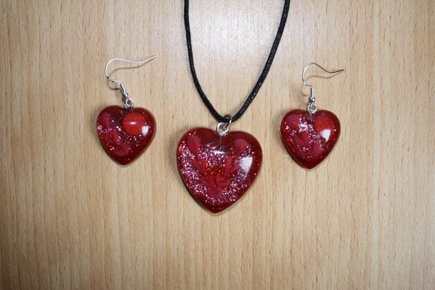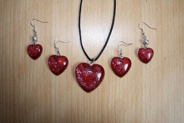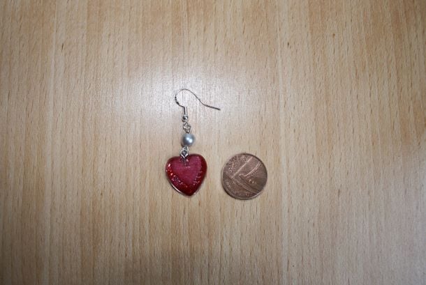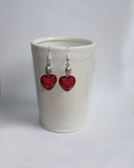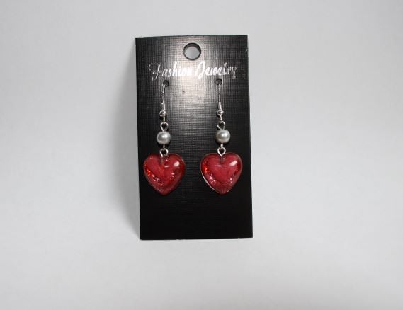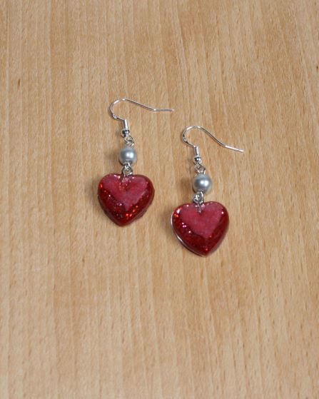 Beautiful hand made (NO VOC, NO BPA) Non yellowing arts and craft crimsom heart earrings.