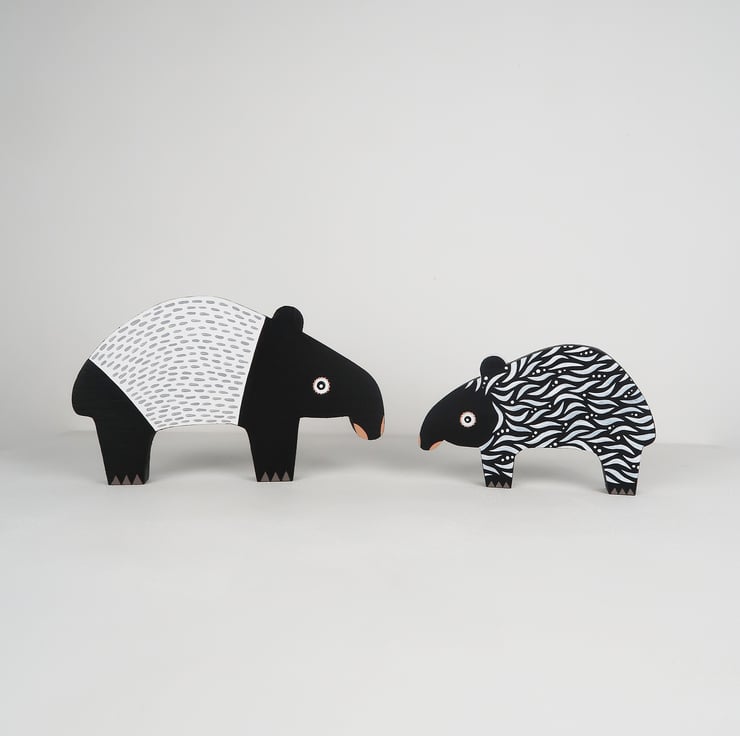 MALAYAN TAPIR animal artwork. Set of 2 - mum & baby.