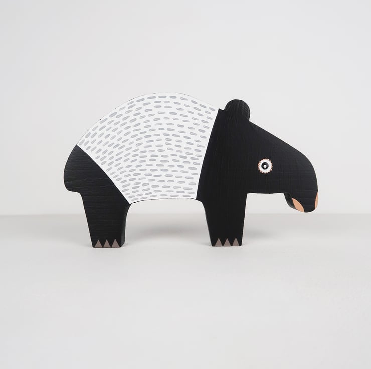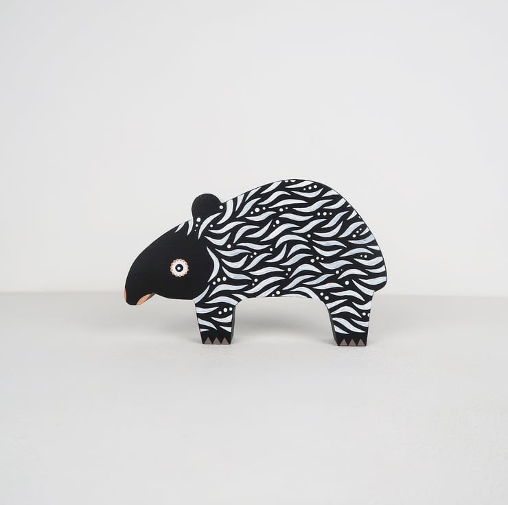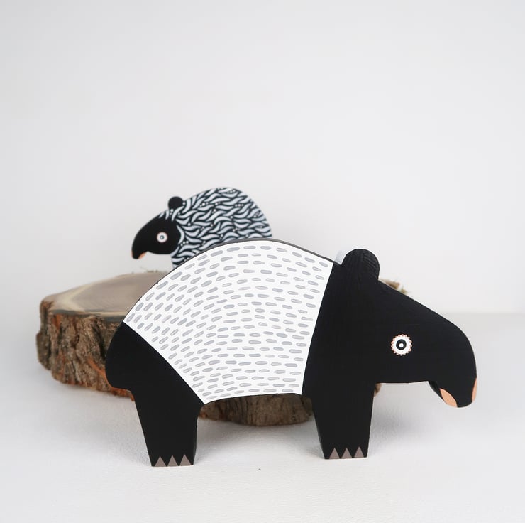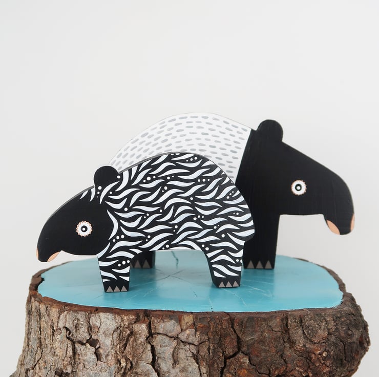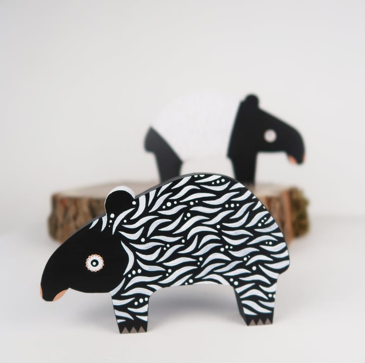Malayan tapir wooden ornaments, set of 2, animal lover gift.