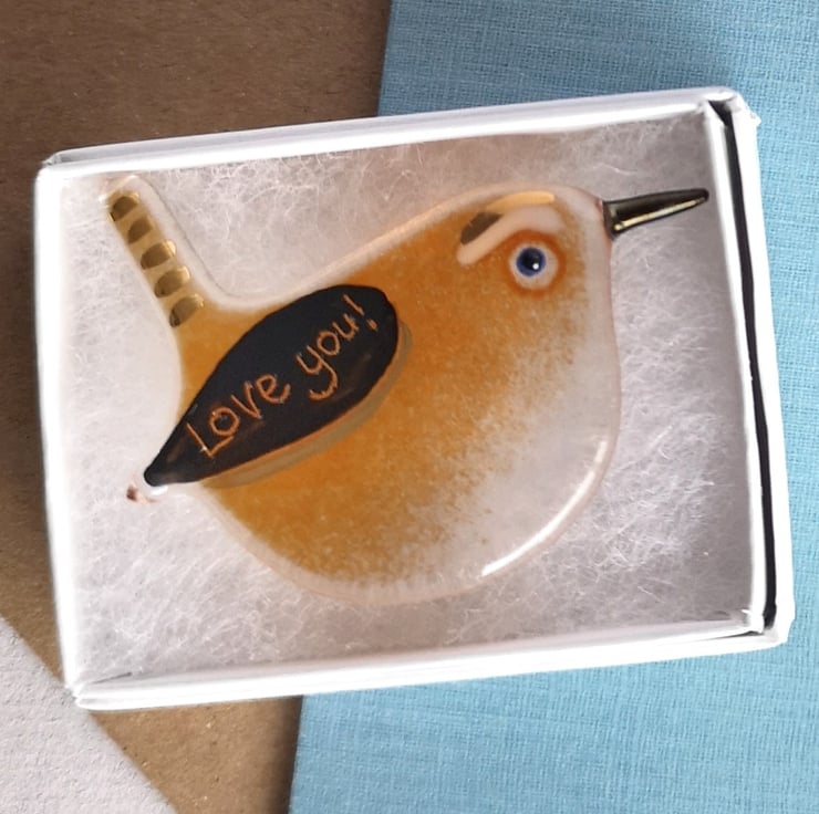 You can also choose to personalise your wren (which costs more) with up to 10 characters including spaces. See the second image as an example. You can leave me your text at checkout.