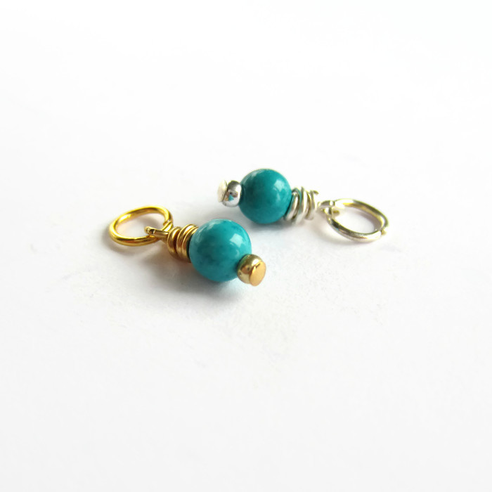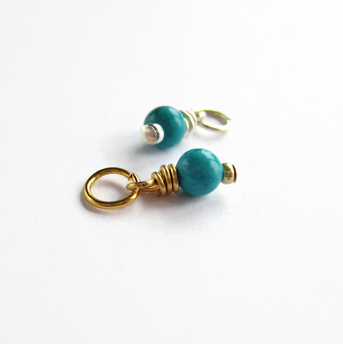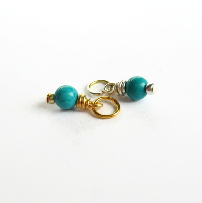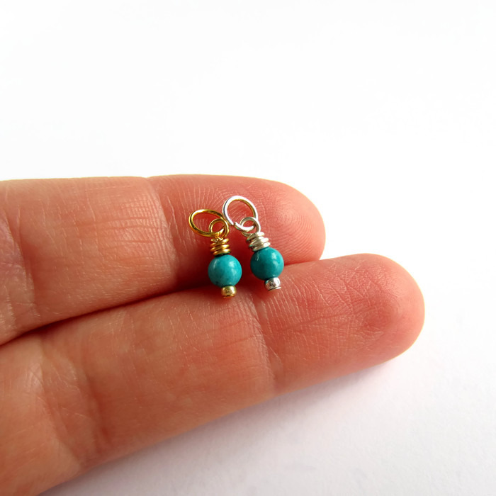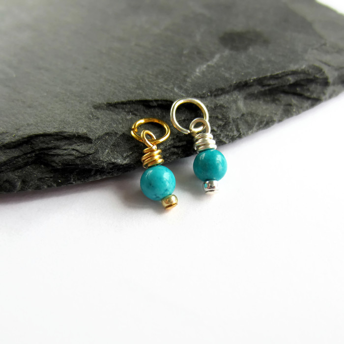 Pretty little 4mm genuine turquoise gemstone beads, December's birthstone, are securely wire wrapped by hand to create a dainty dangle charm ready for you to add to your own jewellery creations.