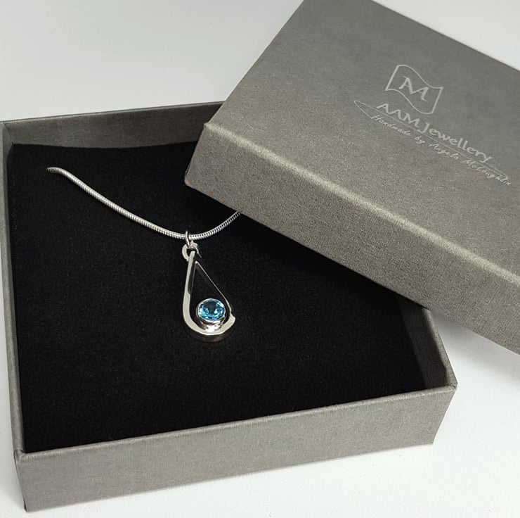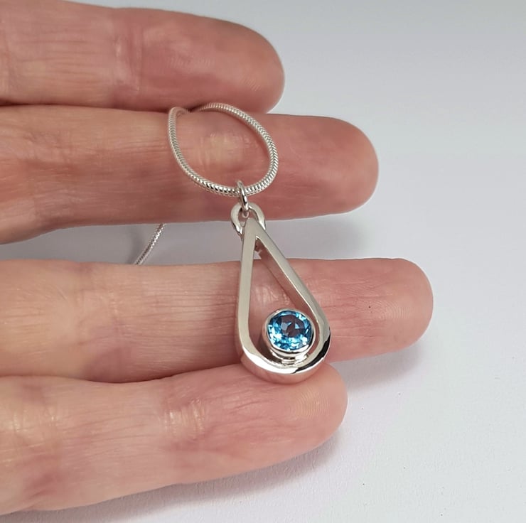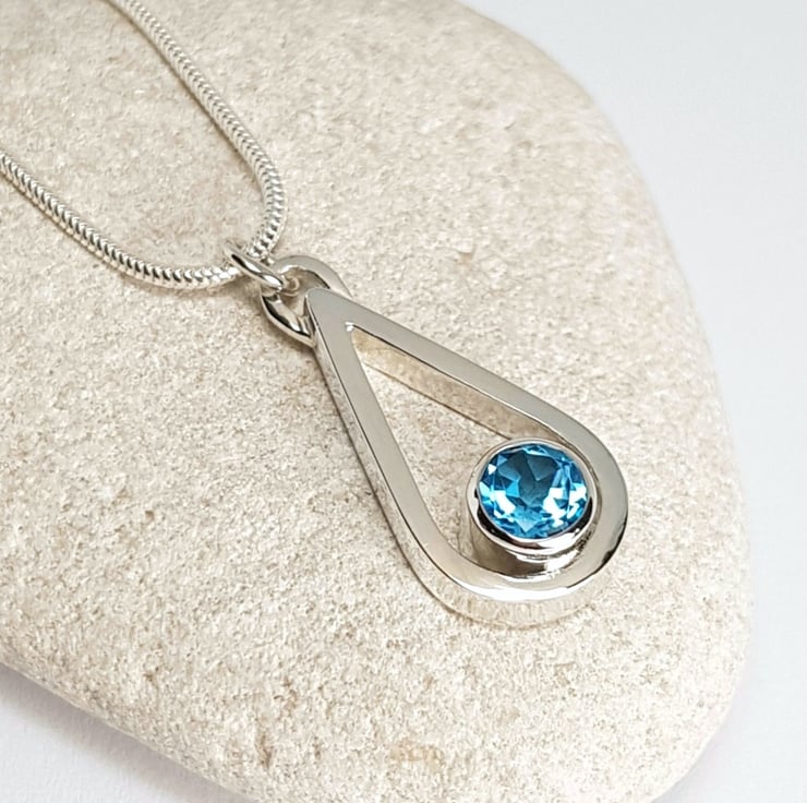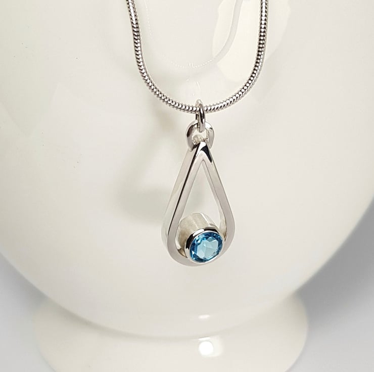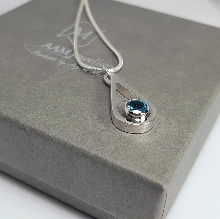 A stylish sterling silver necklace with a stunning 6mm Swiss blue topaz.