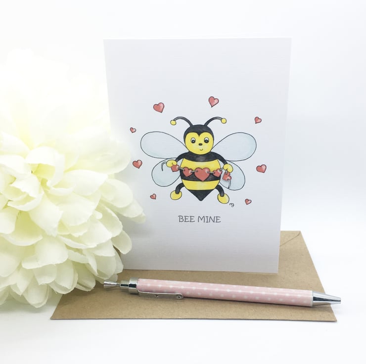 The front of the card reads ‘Bee Mine’.