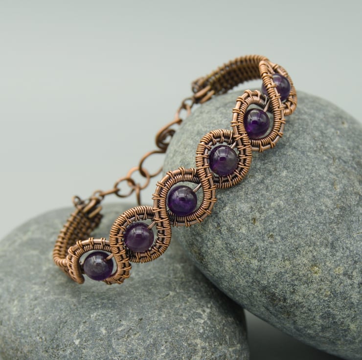 Copper Wire Woven Beaded Wave Bracelet (second photo shows this design in Amethyst)