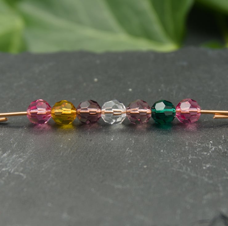Bracelet to be customised with seven Preciosa beads in birthstone colours as below (shown in third photo)