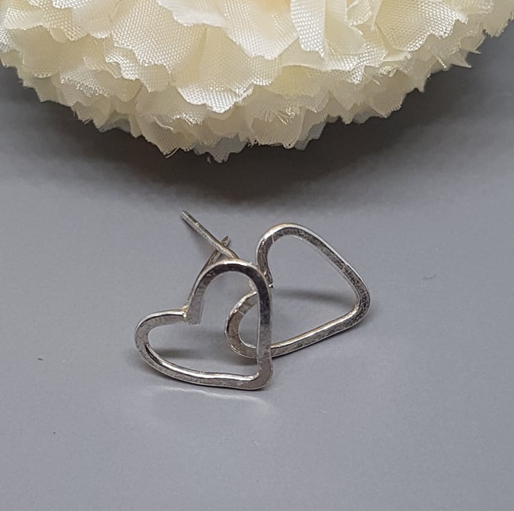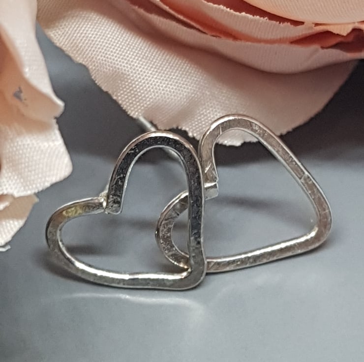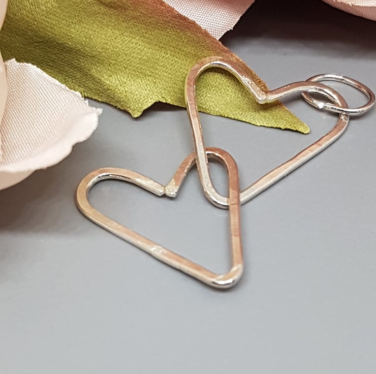 Each earring is formed from sterling silver wire, into a rustic heart shape and then hammered to create facets on the surface which once polished catch the light and create a lovely sparkle effect.