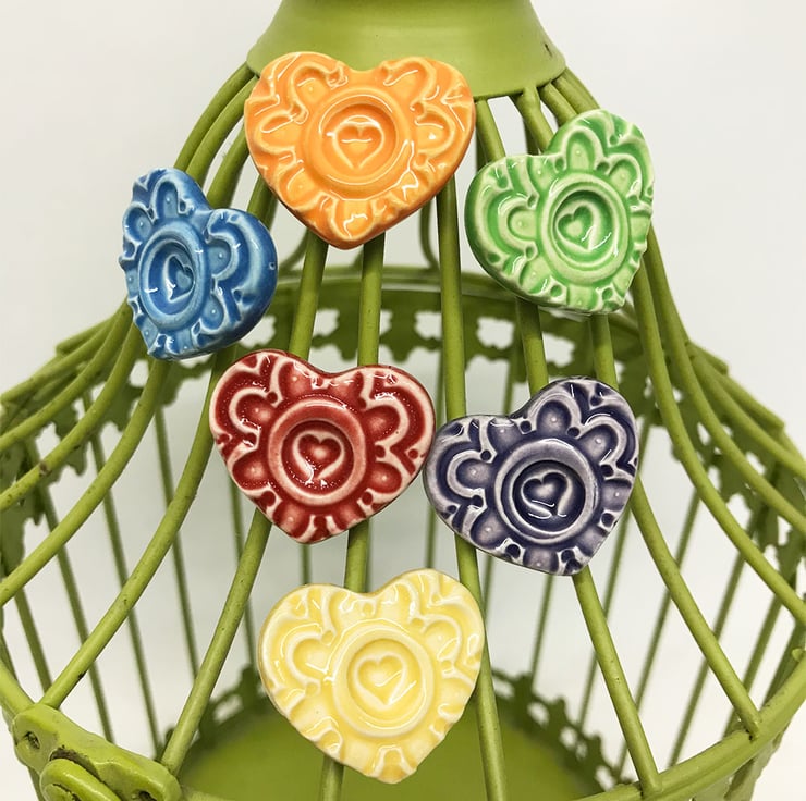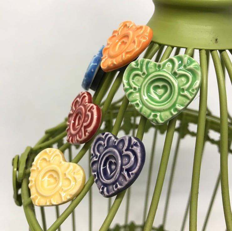 Set of six bright ceramic heart magnets pottery fridge magnet