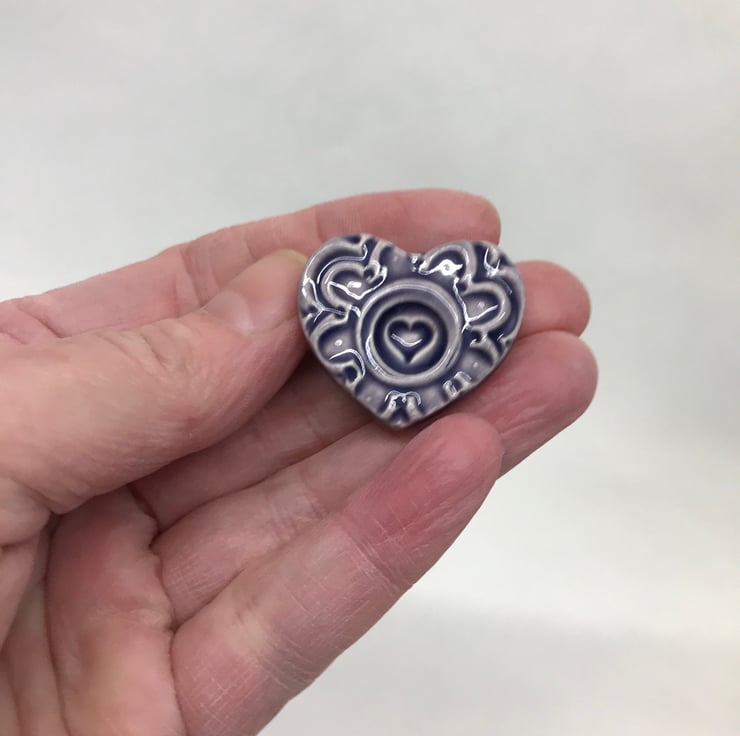 This listing is for a set of six little ceramic fridge magnets, made from white earthenware clay. They are hand decorated with a heart design and have a small magnet glued to the backThey have been fired once to the bisque stage and then a second firing for the glaze. They measure approx 30mm x 28mm x 3mm deep.