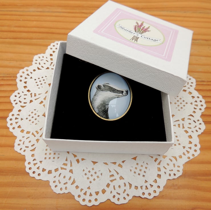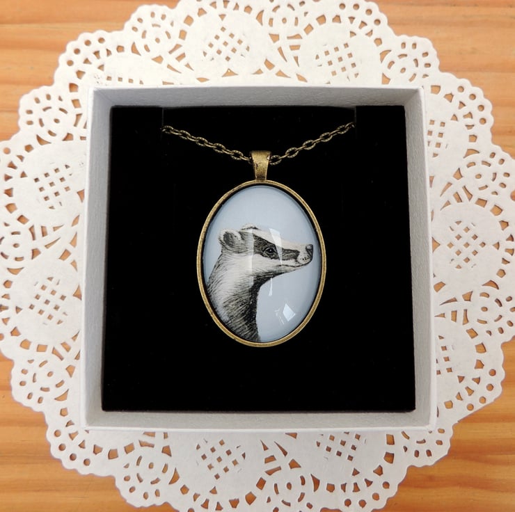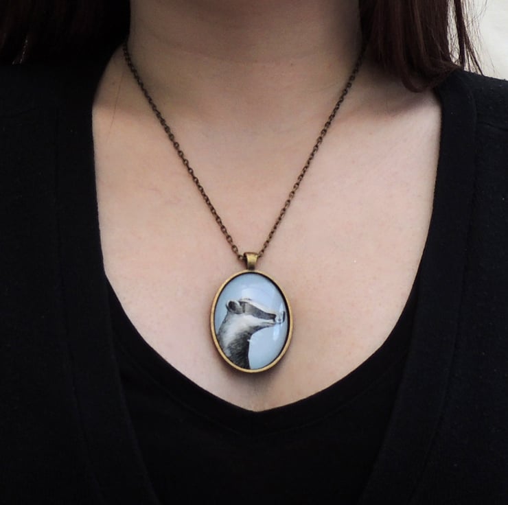 Antique bronze effect necklace with a Badger illustration set in a sweet and simple cameo style pendant. Necklace comes presented in a Heather's Cottage box.