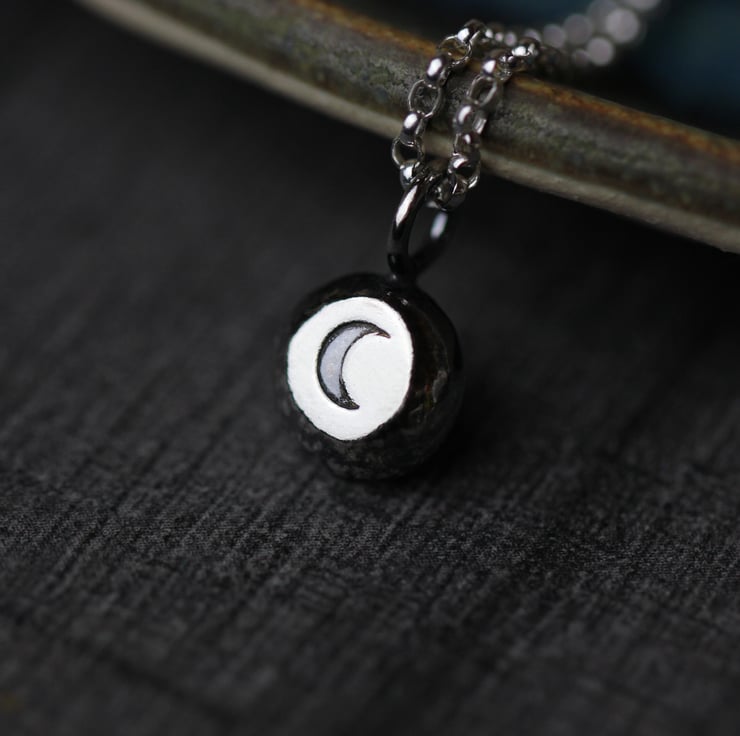 The pendants have a rustic/weathered look. They have been given an oxidised patina (blackened) and then buffered back and polished in areas.