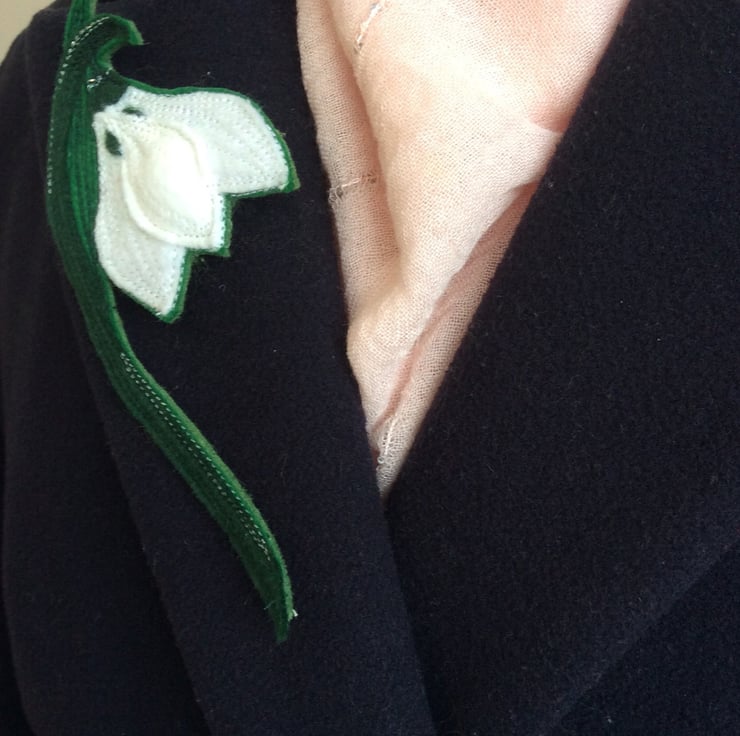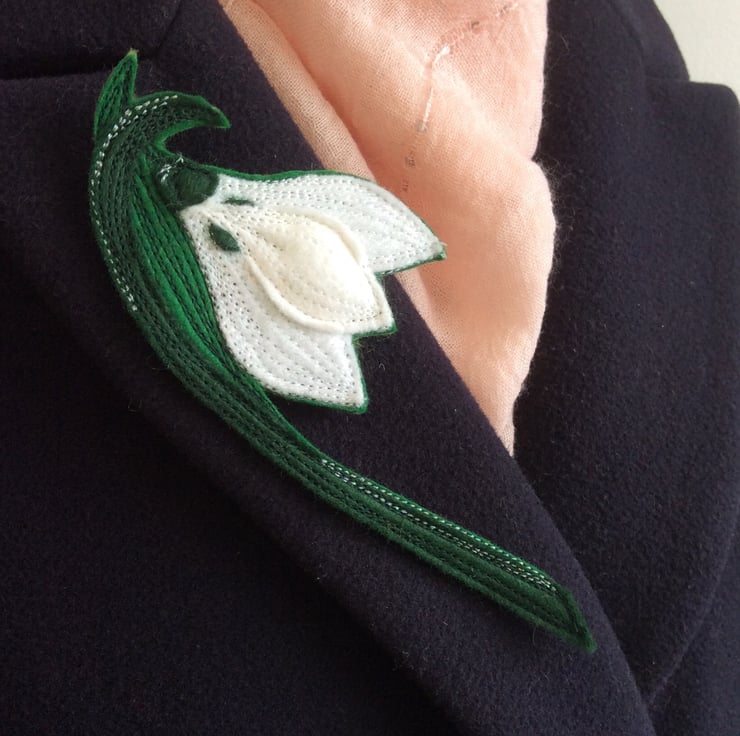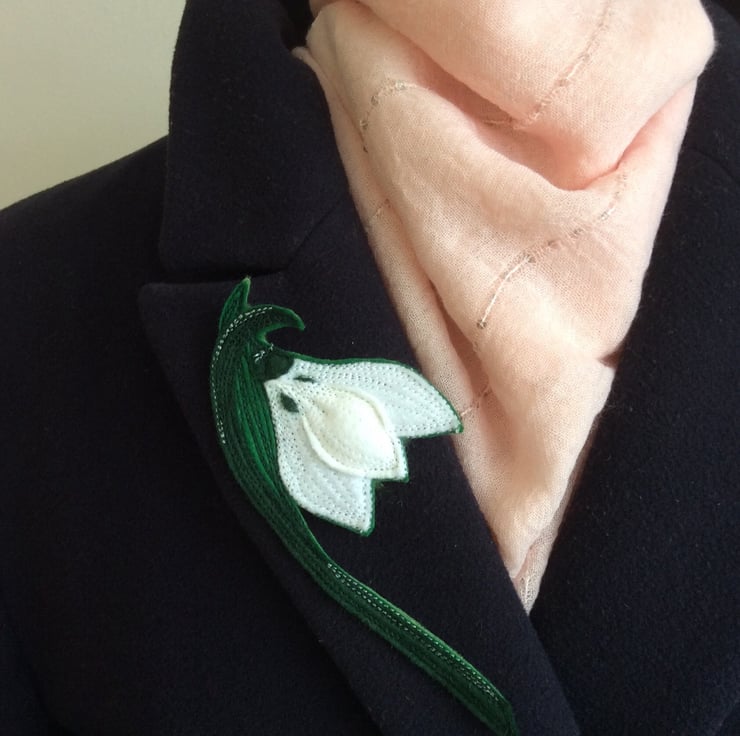 Heralding the beginning of spring, this beautiful, snowdrop brooch is just perfect for that spring coat! This brooch is one of a kind and would be unique to you.