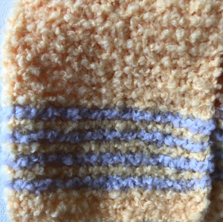 I like using different yarns so tried this boucle one. It is very soft and light making it ideal for baby clothes.