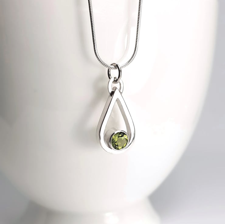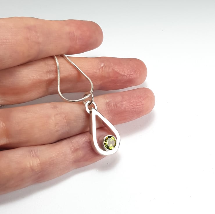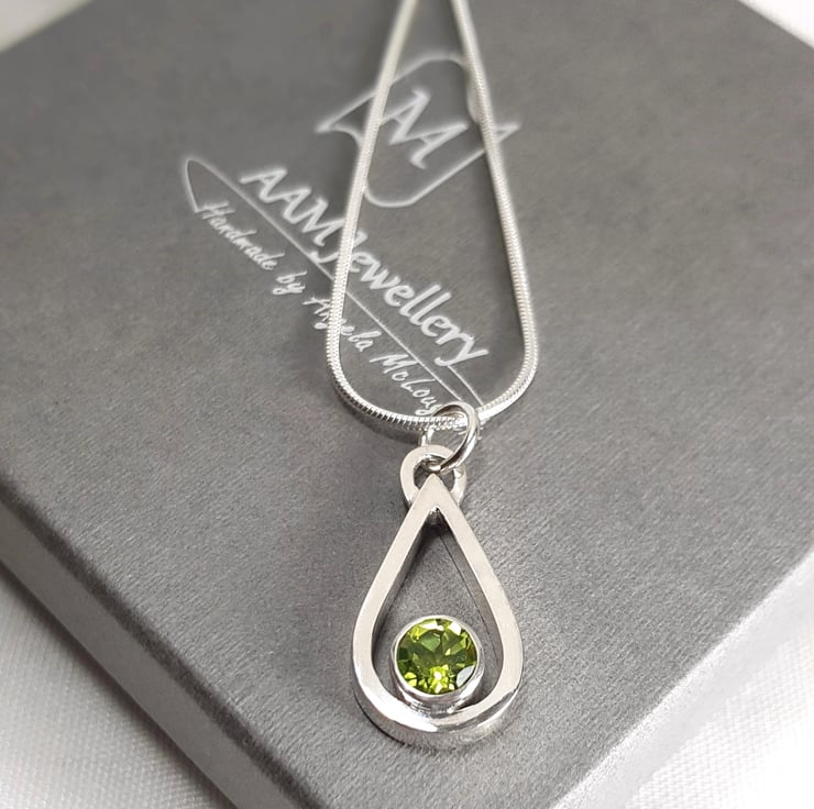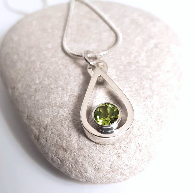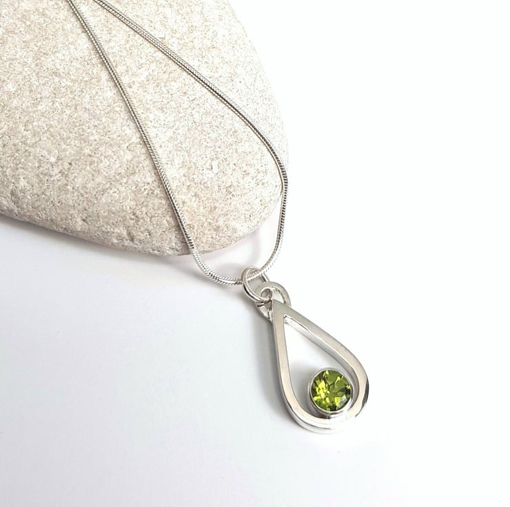 Sterling silver necklace featuring a stunning vibrant green peridot.