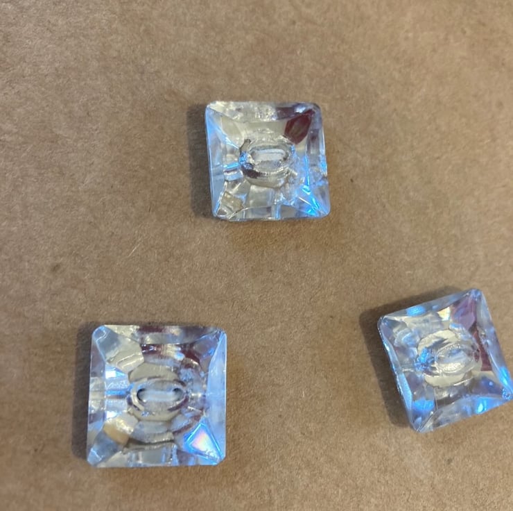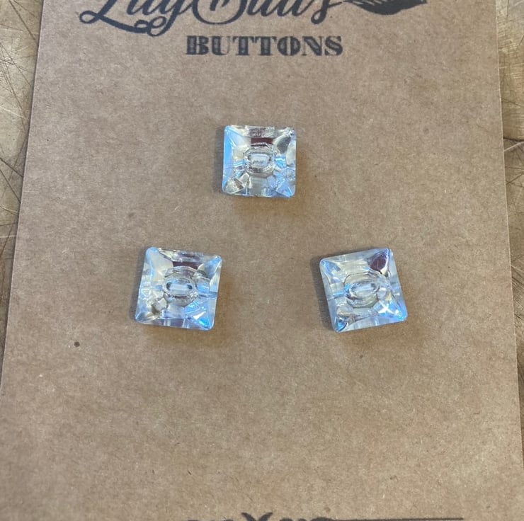 3 gorgeous square silver crystal buttons, sooo pretty 16mm