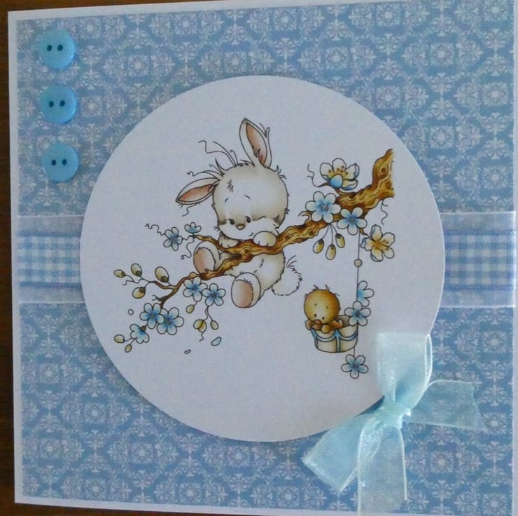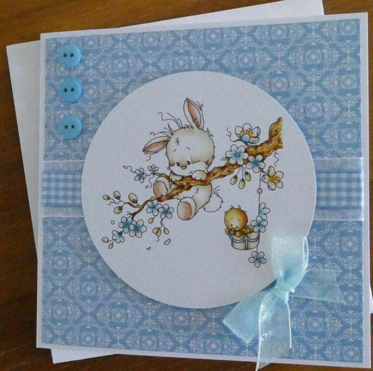 The card has been left blank as it would be suitable as an Easter, New Baby or Birthday card.