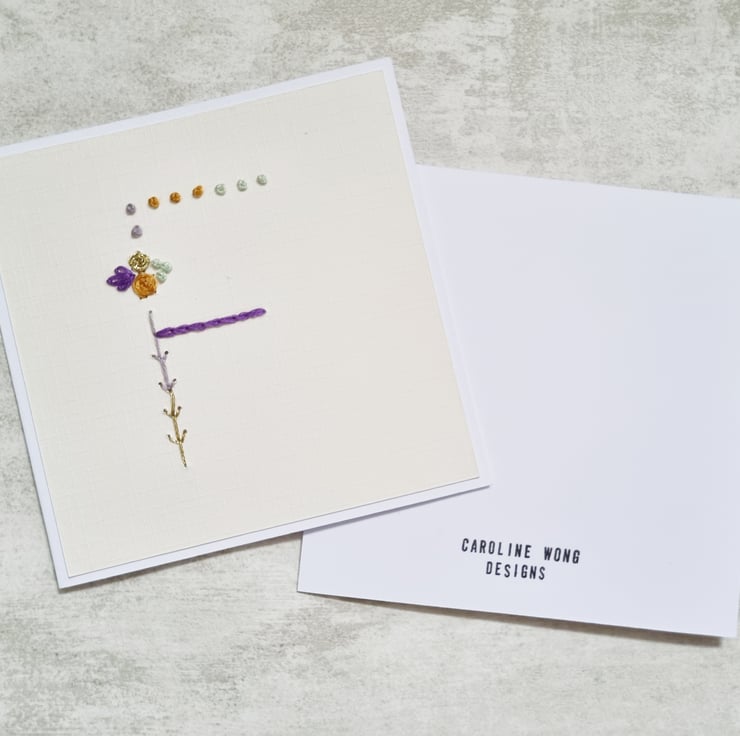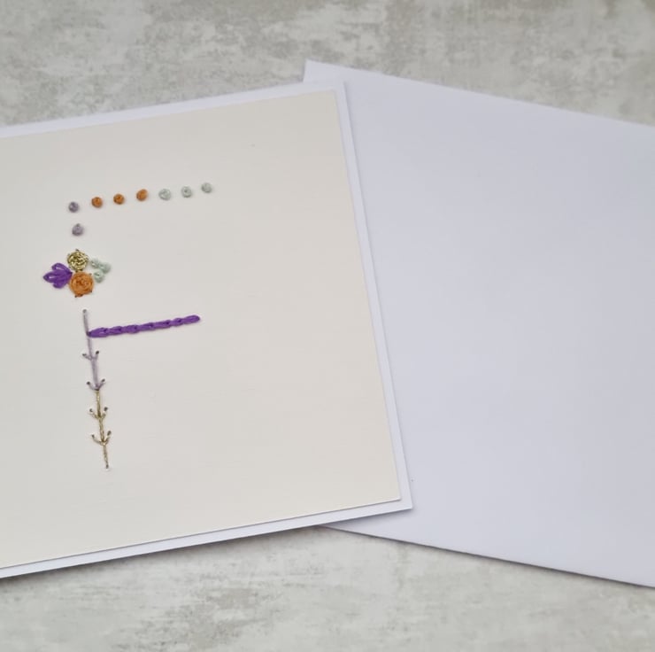 Letter F Embroidered Card, Personalised Bridesmaid Card, Birthday Keepsake