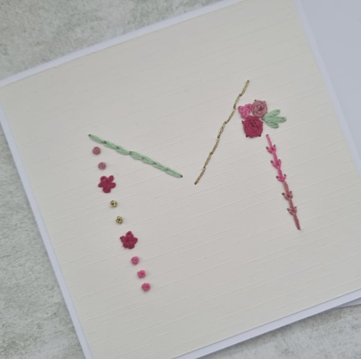 Letter M Embroidered Card, Personalised Bridesmaid Card, Birthday Keepsake Card