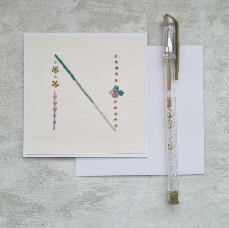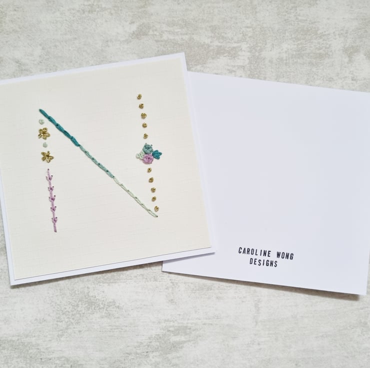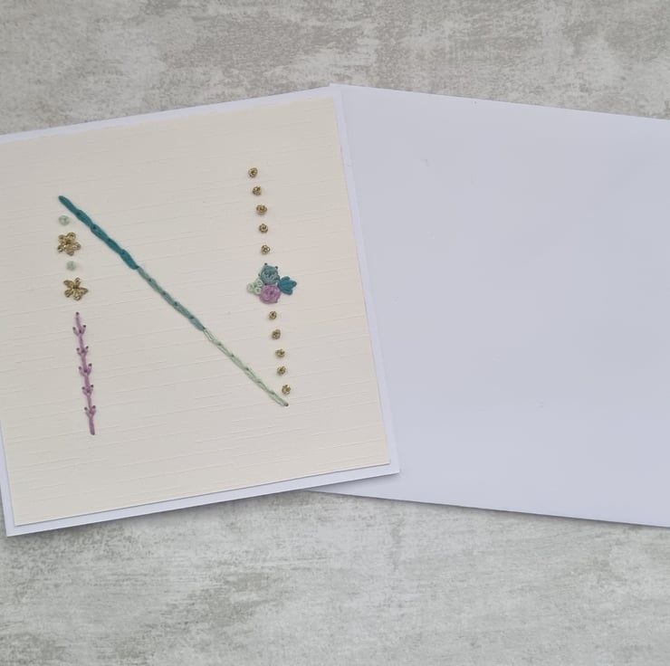Letter N Embroidered Card, Personalised Bridesmaid Card, Birthday Keepsake Card