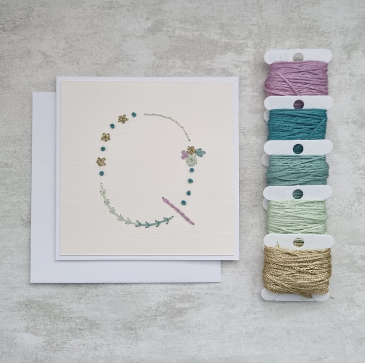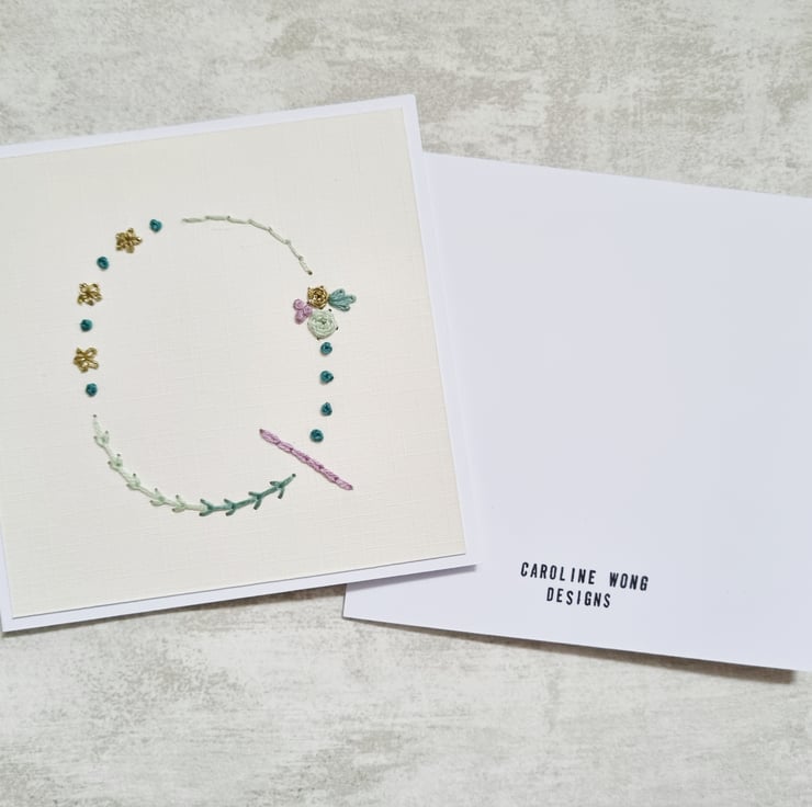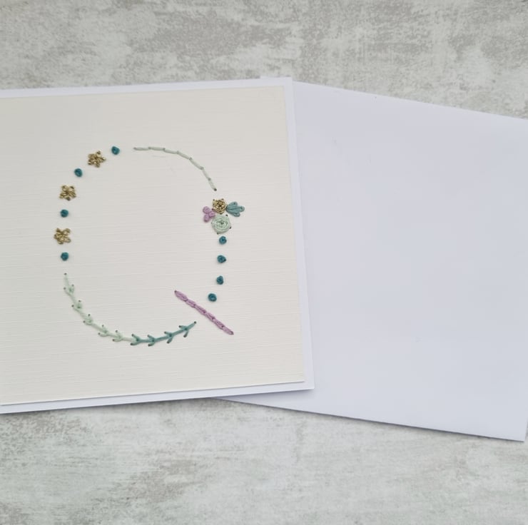 Letter Q Embroidered Card, Personalised Bridesmaid Card, Birthday Keepsake Card
