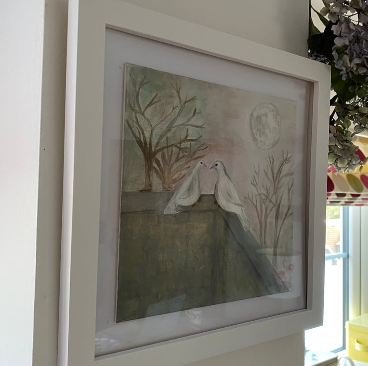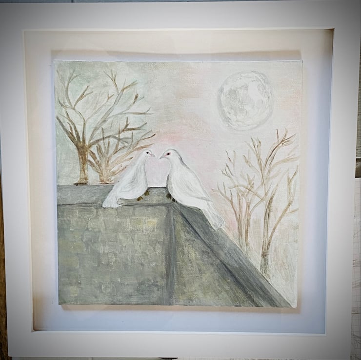 Original signed acrylic painting. Doves